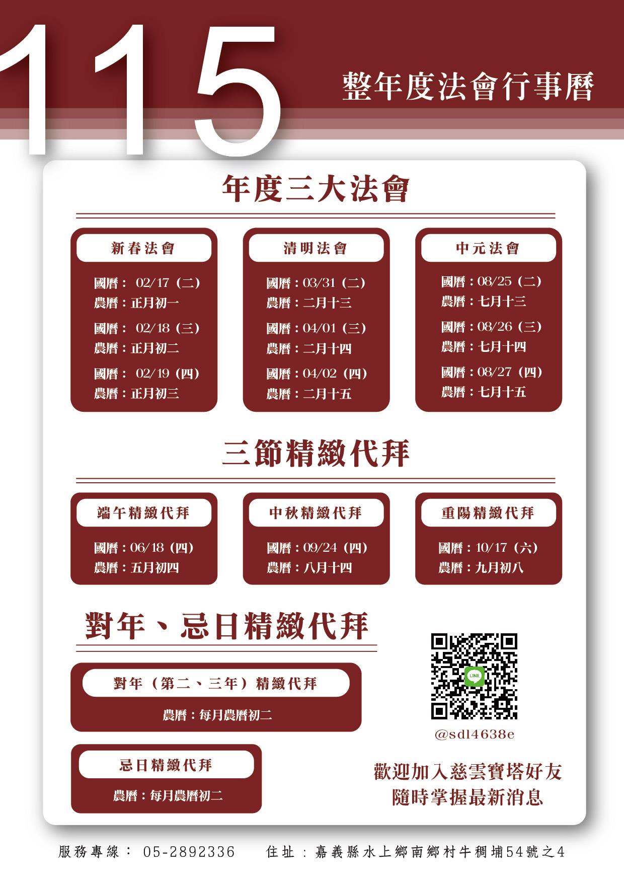115年整年度法會行事曆
