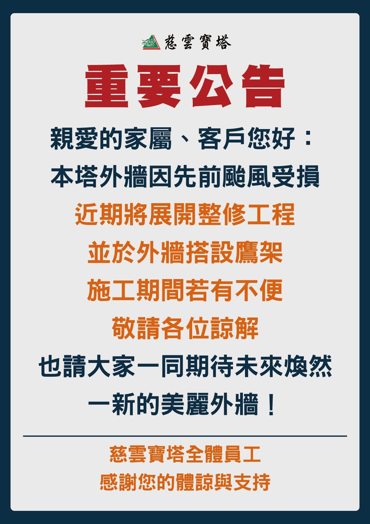 【外墻施工公告】